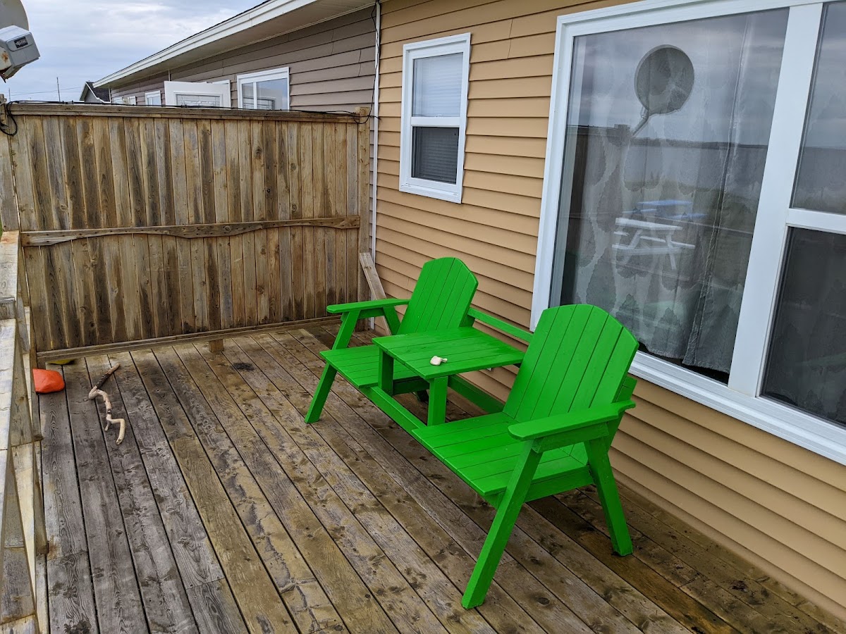 My Mom and I stayed at Oceanside cabins for 8 days and thoroughly enjoyed our stay. It is a stone throw away from the ocean! We had 2 bedrooms, a well equipped kitchen, living room, and 3 piece bathroom. Large deck, fire pit, ample seating. Our accommodation was clean, service was fantastic and we could not ask for a better location. The food and service at the restaurant was spectacular. The proximity to downtown was a 5 min. Drive. A perfect location for road trips and sightseeing. Thank you! Jackie & Val.